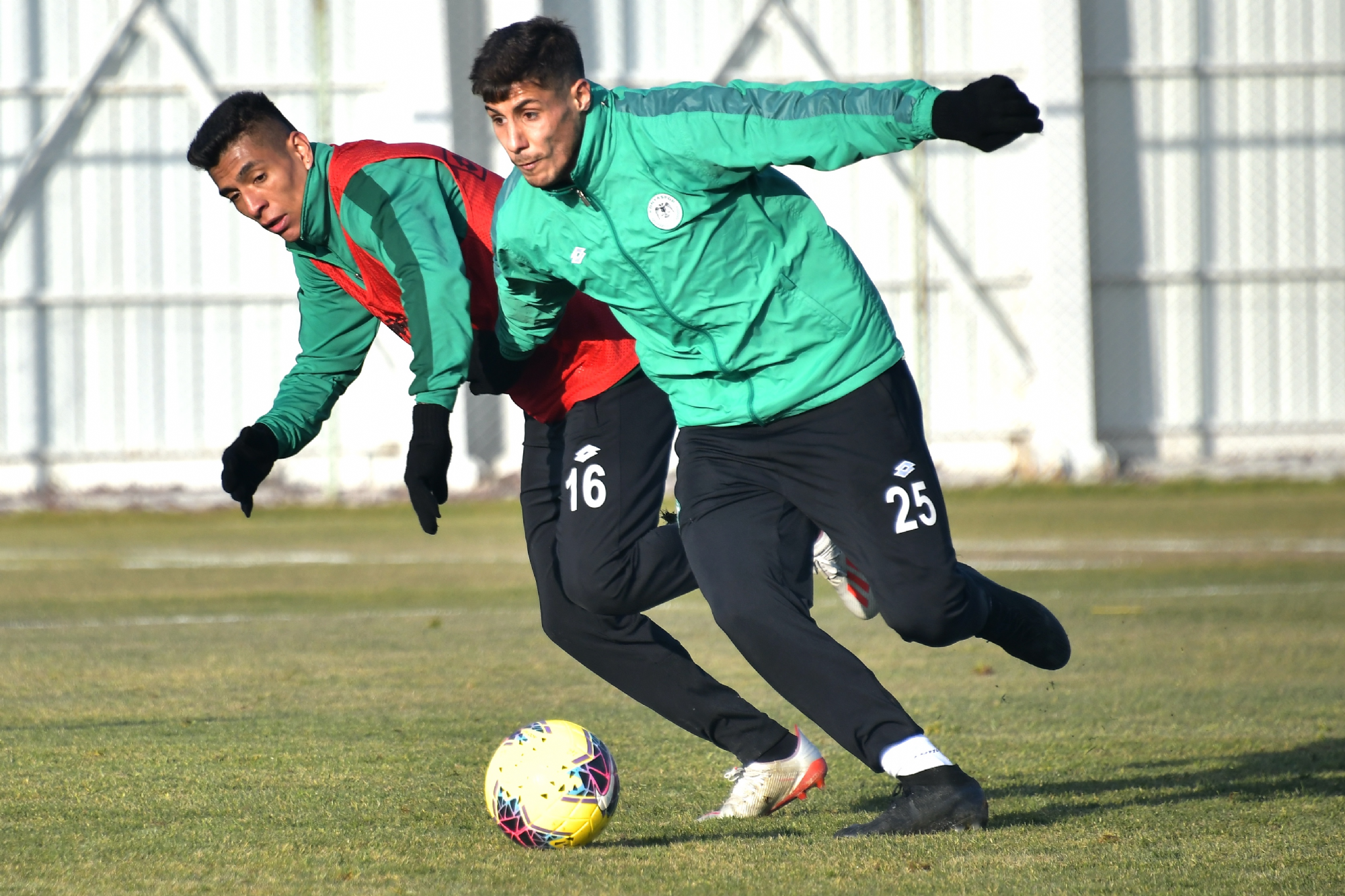 İttifak Holding Konyaspor’umuz, 23 Aralık Pazartesi günü iç sahada Trabzonspor ile oynayacağı 16.hafta maçının hazırlıklarına akşam saatlerinde Kayacık Tesisleri’mizde yaptığı antrenmanla devam etti. Teknik Direktörümüz Aykut Kocaman ve yardımcı antrenörlerimiz yönetiminde gerçekleşen antrenmana tedavisine devam edilen Savaş Polat katılmazken, Marko Jevtovic takımla çalıştı. Koşu ve ısınma-çabukluk hareketleri ile başlayan antrenman 7’ye 4 oyun ile devam etti. Oyuncularımız antrenmanı 4’e 4 oyun ve çift kale maç ile tamamladı. Antrenman Fotoğraflarının Tamamı İçin: https://we.tl/t-NRn3jb9m7I