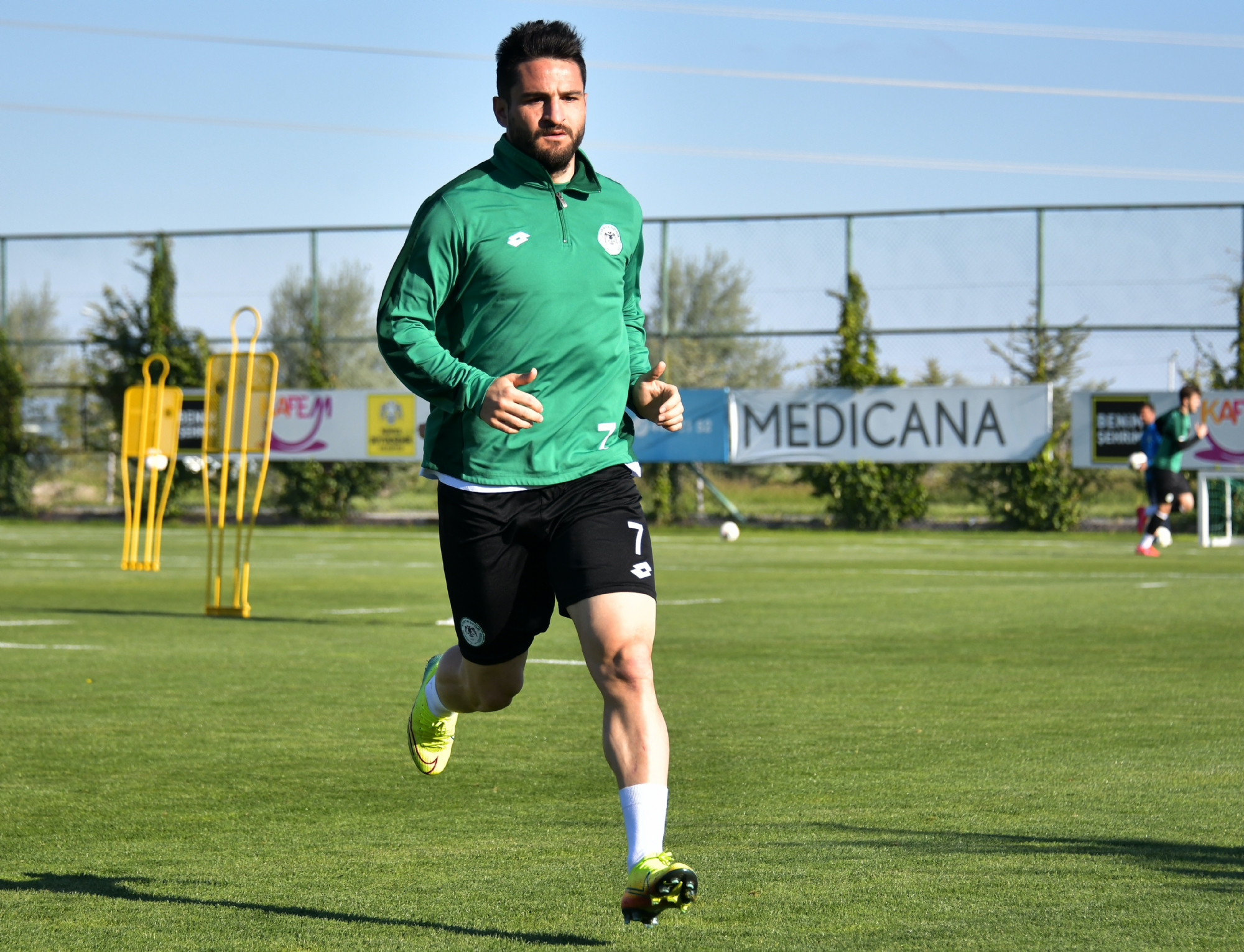 İttifak Holding Konyaspor’umuz, akşam saatlerinde Kayacık Tesisleri’mizde yaptığı antrenmanla hazırlıklarına devam etti. Teknik Direktörümüz Bülent Korkmaz ve yardımcı antrenörlerimiz yönetiminde gerçekleştirilen antrenmanda oyuncularımız, gruplar halinde koşu ve ısınma hareketleri ile başlayan antrenmanı topla yapılan çabukluk hareketleri ile sürdürdü. Antrenman pas ve top çalışması ile sona erdi.