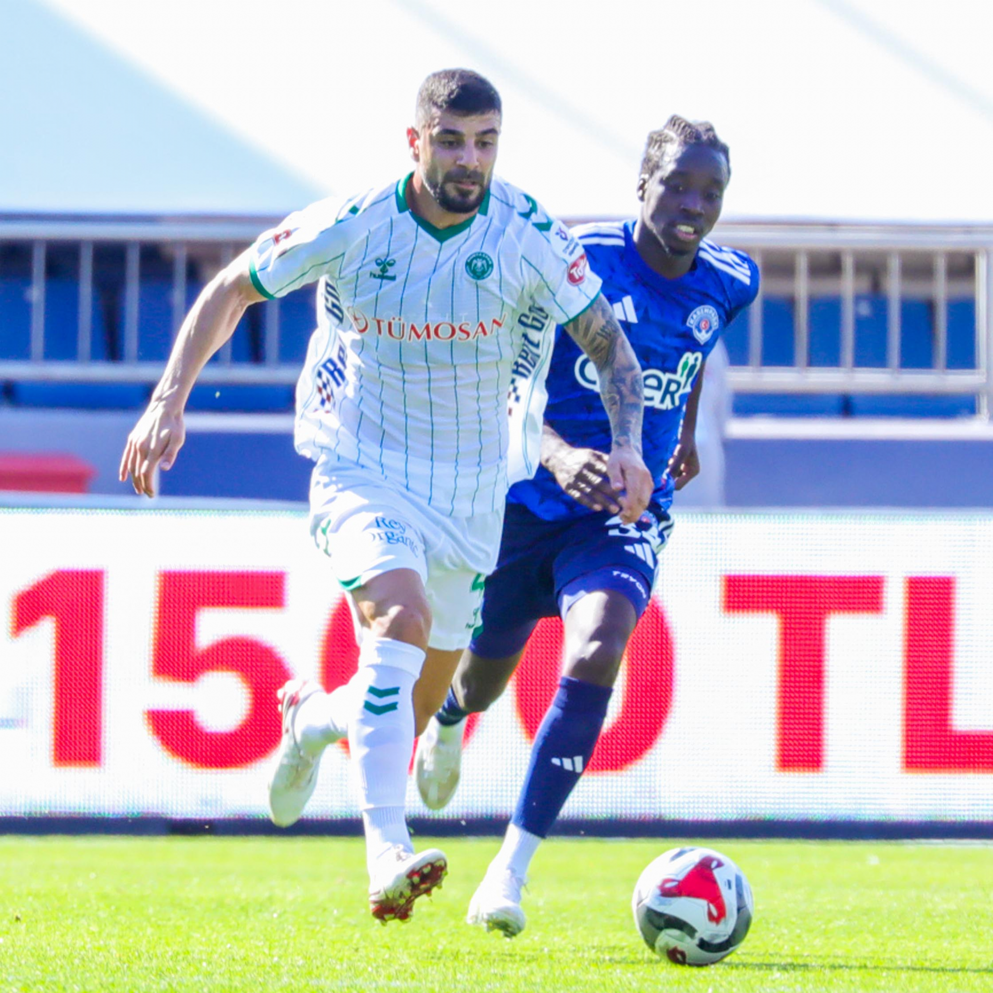 Tümosan Konyaspor’umuz, Trendyol Süper Lig’in 8’inci hafta maçında Kasımpaşa’ya konuk oldu. Recep Tayyip Erdoğan Stadyum’unda oynanan karşılaşma 1-1 eşitlikle tamamlandı. Teknik Direktörümüz Recep Uçar karşılaşmaya; Deniz Ertaş, Yhoan Andzouana, Adil Demirbağ, Uğurcan Yazğılı (Dk. 58 Josip Ćalušić), Guilherme Sitya, Marko Jevtovic, Melih İbrahimoğlu (Dk. 89 Ufuk Akyol), Alassane Ndao (Dk. 58 Marius Ștefănescu), Pedrinho (Dk. 84 Morten Bjørlo), Jackson Muleka (Dk. 89 Kaan Akyazı) ve Umut Nayir ilk onbiriyle başladı. İlk yarıda Jackson Muleka’nın golüyle devreyi 1-0 önde kapattık. İkinci yarıda ev sahibi ekip, 72’nci dakikada kaydettiği golle eşitliği yakaladı ve müsabaka 1-1 sona erdi. Takımımız, çalışmalarına 9 Ekim Perşembe günü saat 18.30 ’da yapacağı antrenman ile başlayacak.