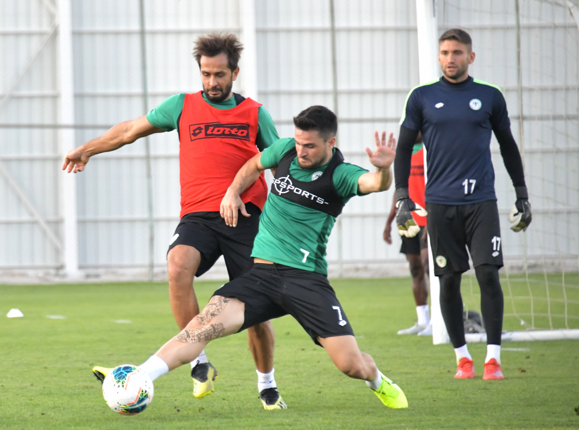 20 Eylül Cuma günü Süper Lig 2019-2020 Cemil Usta Sezonu 5.hafta açılış maçında Göztepe ile karşılaşacak Konyaspor’umuz, günü öğleden sonra yaptığı antrenmanla değerlendirdi. Teknik Direktörümüz Aykut Kocaman ve yardımcı antrenörlerimiz yönetiminde Kayacık Tesisleri’mizde yapılan antrenmana takımdan ayrı çalışan ve tedavilerine devam edilen Ali Çamdalı ile Paolo Hurtado katılmadı. Koşu ve ısınma hareketleri ile başlayan antrenman pas çalışması ile devam etti. Oyuncularımız şut ve gol çalışmasının ardından dönüşümlü olarak oynanan 5’e 5 turnuva maçları ile antrenmanı tamamladı. Antrenman maçının galibi Selim Ay’ın kaptanlığını yaptığı Yeşil Takım oldu.