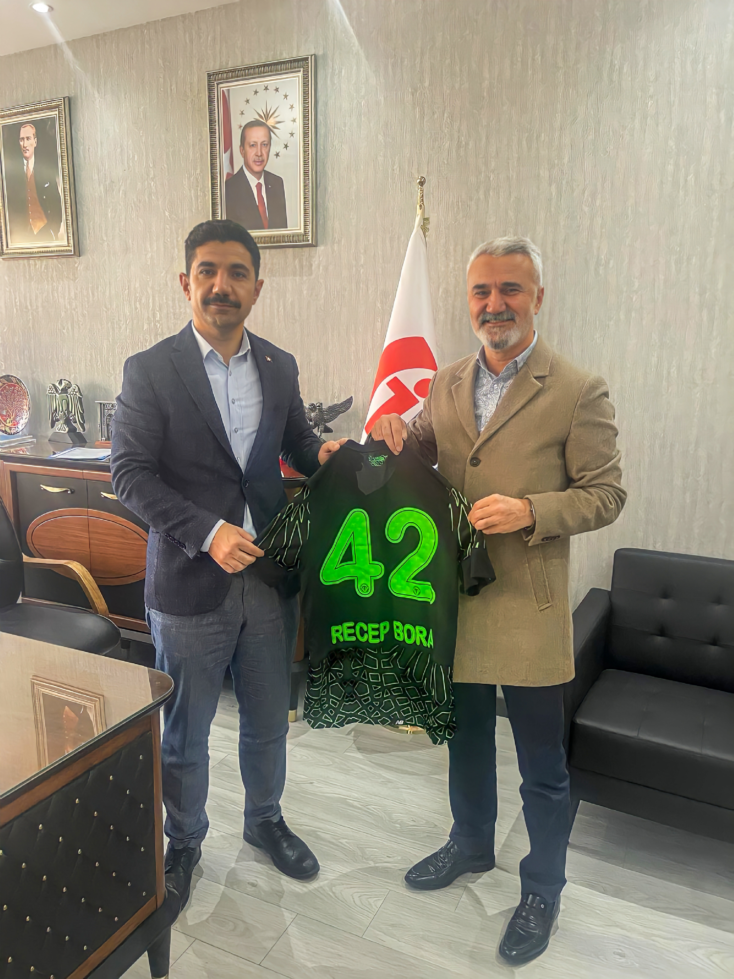 Başkan Yardımcımız Halil İbrahim İncer, Konya Vergi Dairesi Başkanı Recep Bora’ya nezaket ziyaretinde bulundu. Samimi ortamda geçen ziyarette Başkan Yardımcımız Halil İbrahim İncer, Konya Vergi Dairesi Başkanı Recep Bora’ya forma takdim etti.