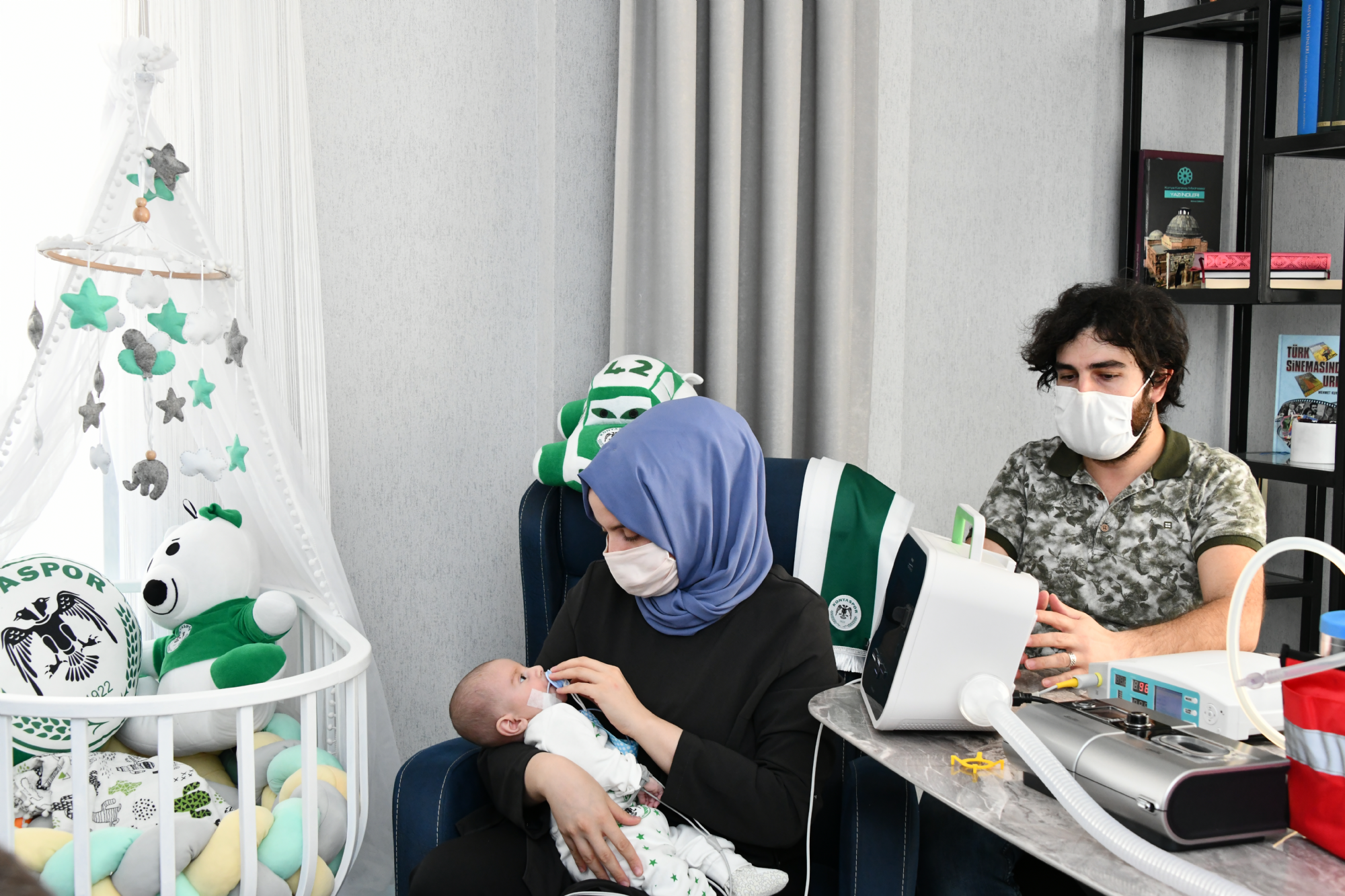 Geçtiğimiz yıl evlenen Ahmet ve Edanur Zencir çiftinin 2.5 ay önce erkek bebekleri dünyaya geldi. Ali bebeğin yutma ve solunumla ilgili sıkıntılarının olduğu aile tarafından fark edilince doktora götürüldü ve kendisine ölümcül bir kas hastalığı olan Spinal Musküler Atrofi (SMA) teşhisi konuldu. Aile tedavinin çok masraflı olması nedeniyle sosyal medya üzerinden bir kampanya başlattı. Bu arada Ali’nin tedavisine Konya’daki bir hastanede devam edildi. Ancak tedavinin evde sürdürülebilmesi ve Ali bebeğin rahat nefes alabilmesi için bazı cihazların temin edilmesi gerekiyordu. SMA hastası 2.5 aylık Ali Zencir için aile İttifak Holding Konyaspor’un Gaziantep ile oynayacağı maçtan bir gün önce Başkanımız Hilmi Kulluk’a ulaştı. Hastanedeki tedavisinin evde devam edebilmesi için 5 ayrı cihaza ihtiyaç duyduklarını ve bunu temin edilmediği sürece minik Ali’nin hastanede kalacağını ifade eden Ahmet ve Eda Nur Zencir çifti, Başkanımızdan destek istedi. Başkanımız Hilmi Kulluk aileye cihazlarla ilgili tüm masrafları karşılaşacağını söyledi. Ancak konudan haberdar olan yönetim kurulu üyelerimiz Ali’nin tedavisine destek olmak istediklerini Başkanımıza ilettiler. Böylelikle Konyaspor yönetiminin temin ettiği cihazlar 27 Ekim pazartesi günü (dün) aileye teslim edildi. Cihazların evde kurulumu sırasında duygularını anlatan anne Eda Nur Beyaz Zencir “ Yaklaşık 10-12 gündür hastanede kalıyorduk. Eve çıkabilmemizin tek çaresi, solunum cihazlarının ve gerekli diğer cihazları almamızdı. Aile bütçemizden bunu karşılamamız çok zordu. İlk sesimizi duyan Konyaspor oldu. Konyaspor basketbol alt yapı antrenörlerinden Gamze hoca vasıtasıyla Sayın Hilmi Kullak’a ulaştık. Kendisi bize şahsi olarak bu cihazları temin edebileceğini söyledi. Konyaspor’un yöneticilerinden de Allah razı olsun. Onlar da Ali’den haberdar olunca hep beraber Ali’ye destek olmaya karar vermişler. Konyaspor tüm cihazlarımızı aldı. En azından hastaneden çıkarak Ali’nin beşiğinde yatabilmesini sağladık ” şeklinde konuştu. Ali bebeğin kaslarındaki güçsüzlük ve yutma sorunları nedeniyle sadece şırınga ile midesinden beslenebiliyor. Sosyal medyadan yardım kampanyası başlatılan Ali’nin gen tedavisinin iki yıl içinde yapılması gerekiyor. Bu tedavi için de tek dozluk Zolgensma isimli dünyanın en pahalı gen terapisi ilacına ihtiyaç duyuyor. Ahmet ve Edanur Zencir çifti Ali’nin tedavisi için hayırseverlerden yardım bekliyor.